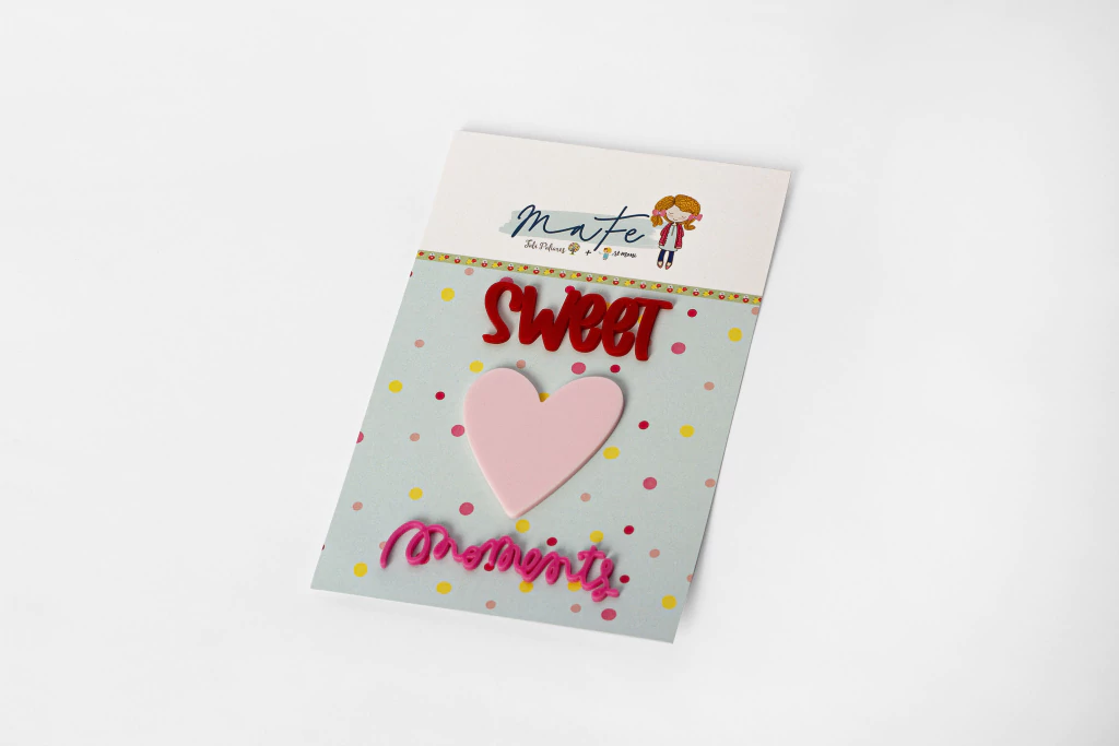 - embalagem com três palavras e um coração (sweet + coração + moments)