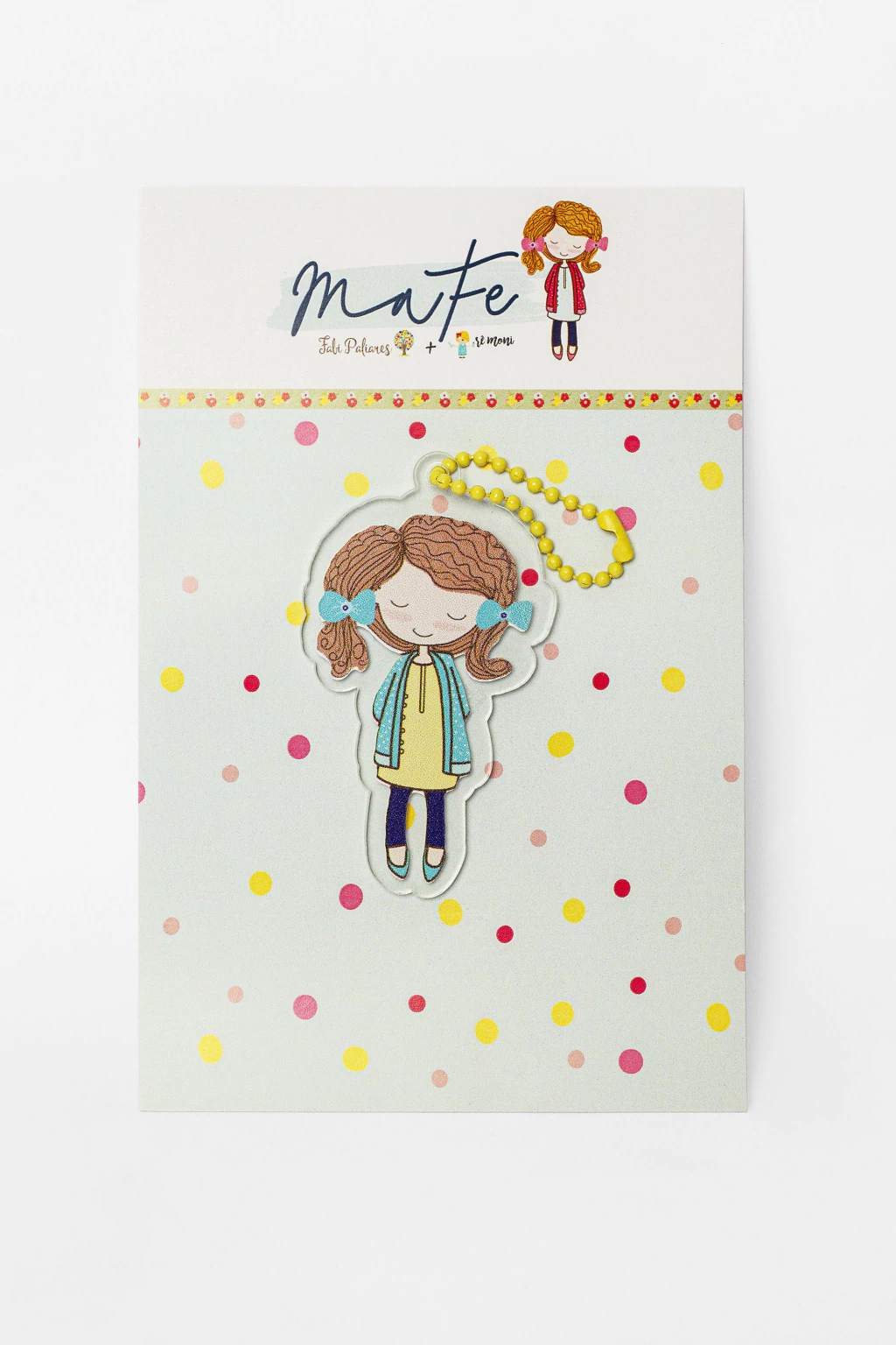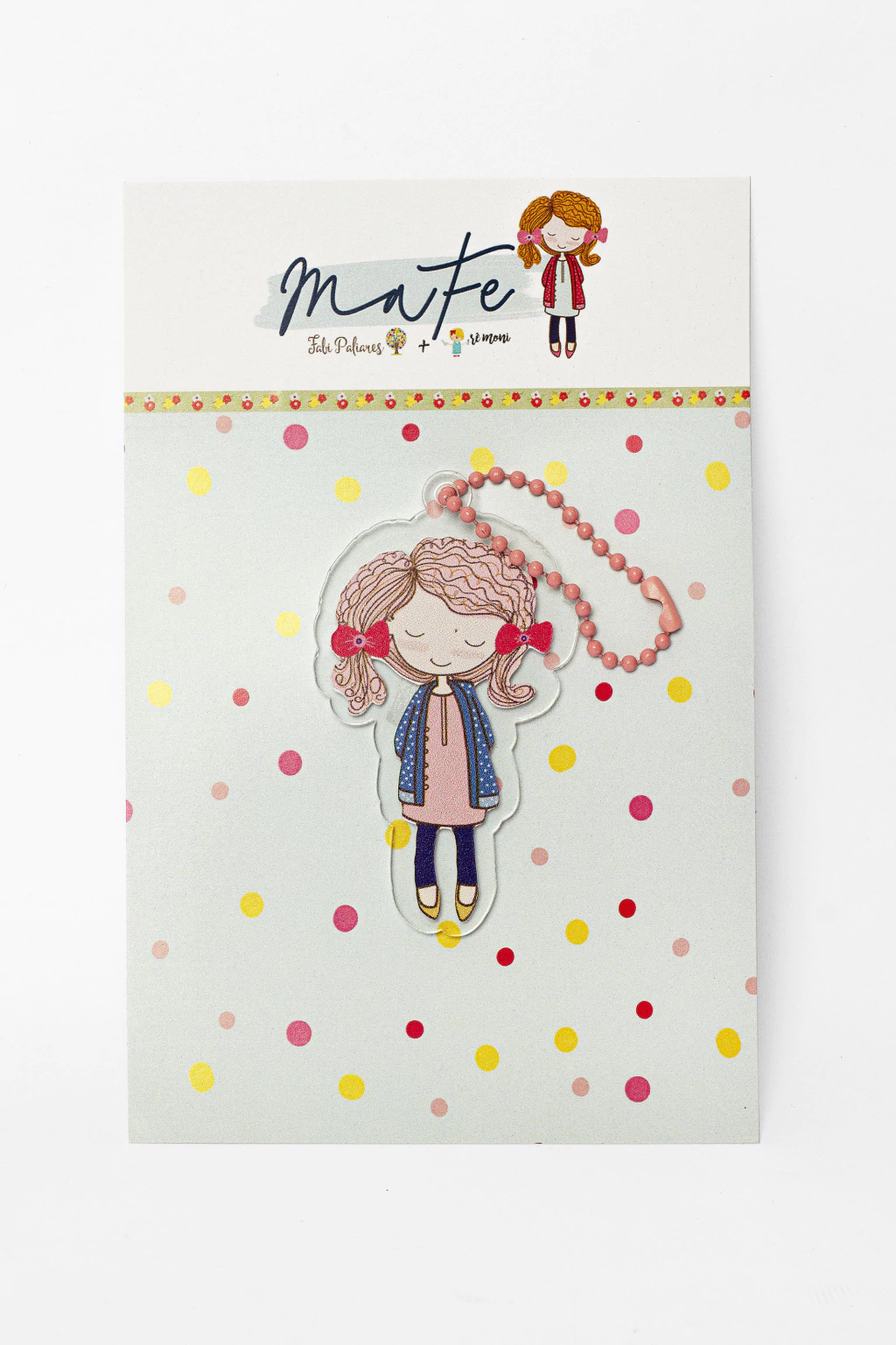 - chaveiros em acrílico adesivado com os personagens da Coleção MaFe
